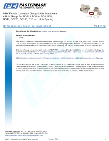 RF Connectors Technical Data Sheet PE44112