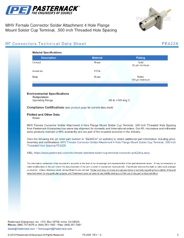 RF Connectors Technical Data Sheet PE4228
