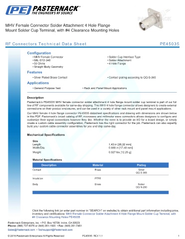 in this PDF. Pasternack’s broad catalog of RF, microwave and millimeter wave connectors allows designers to configure and
