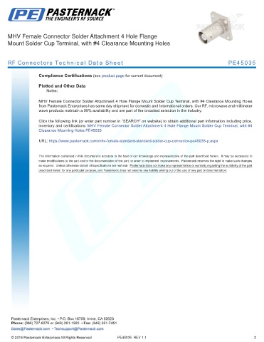 RF Connectors Technical Data Sheet PE45035