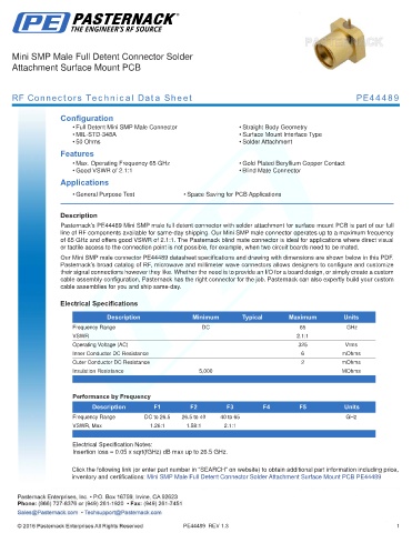 RF Connectors Technical Data Sheet PE44489