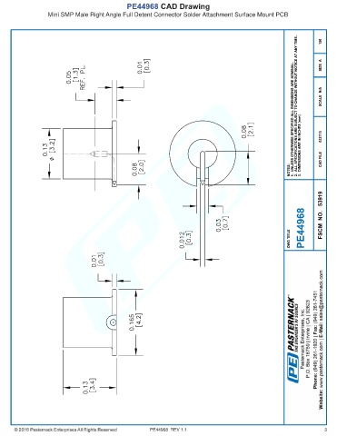 PE44968 CAD Drawing Mini SMP Male Right Angle Full Detent Connector Solder Attachment Surface Mount PCB PE44968 REV 1.1 3