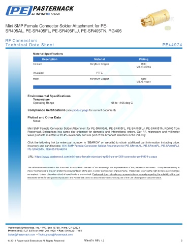 any representation or warranty regarding the suitability of the part described herein for any particular purpose, and Pasternack does not assume any liability arising out of the use of any part or documentation.