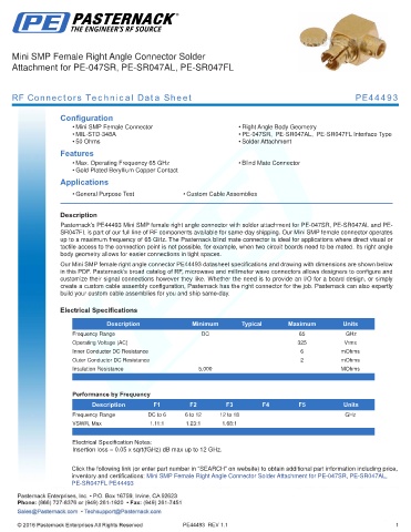 RF Connectors Technical Data Sheet PE44493