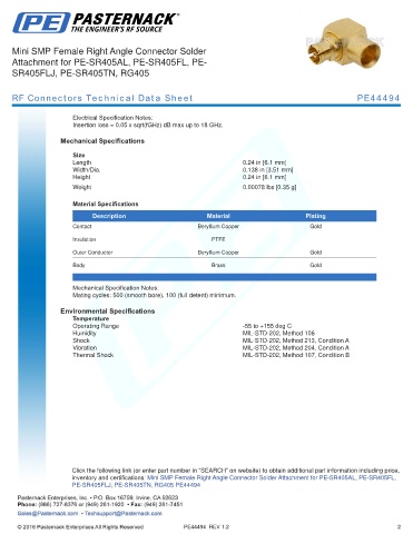 RF Connectors Technical Data Sheet PE44494