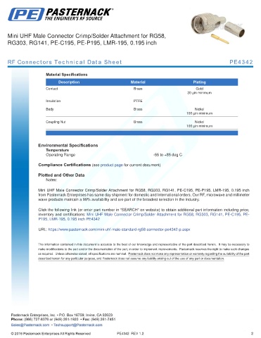 RF Connectors Technical Data Sheet PE4342