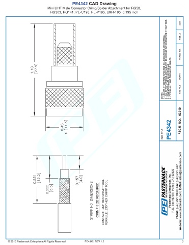 PE4342 CAD Drawing Mini UHF Male Connector Crimp/Solder Attachment for RG58, RG303, RG141, PE-C195, PE-P195, LMR-195, 0.195 inch PE4342 REV 1.2 3