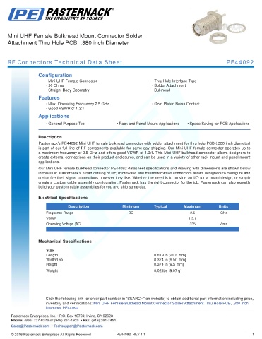 in this PDF. Pasternack’s broad catalog of RF, microwave and millimeter wave connectors allows designers to configure and