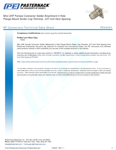 RF Connectors Technical Data Sheet PE44091