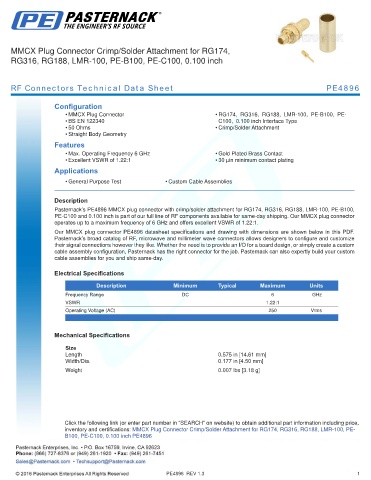 RF Connectors Technical Data Sheet PE4896
