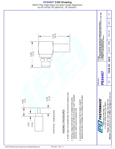 ASSEMBLY PROCEDURES 1. STRIP CABLE AS SHOWN AND TIN CENTER CONDUCTOR. 2. INSTALL CABLE INTO BODY OF CONNECTOR UNTIL CENTER CONDUCTOR SETS IN PLACE. SOFT SOLDER CONTACT AND CENTER CONDUCTOR. 3. SOLDER OUTER CONDUCTOR TO BODY. INSERT INSULATION INTO CONNECTOR & PRESS CAP DOWN.