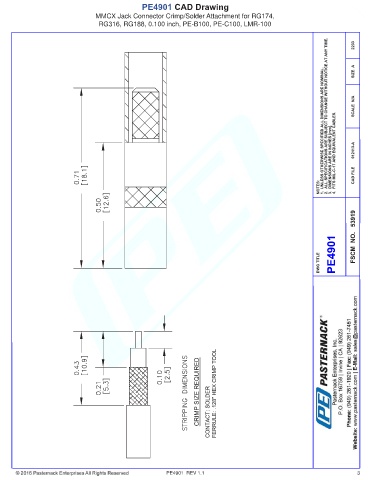 PE4901 CAD Drawing MMCX Jack Connector Crimp/Solder Attachment for RG174, RG316, RG188, 0.100 inch, PE-B100, PE-C100, LMR-100 PE4901 REV 1.1 3