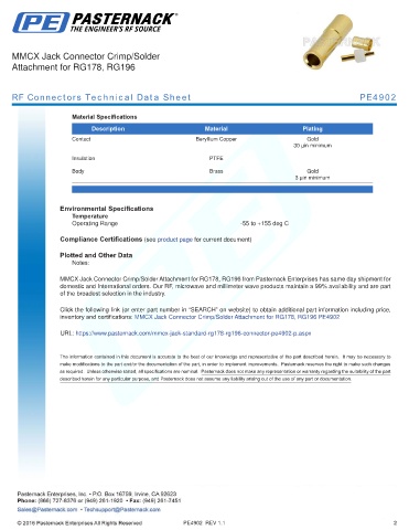 inventory and certifications: MMCX Jack Connector Crimp/Solder Attachment for RG178, RG196 PE4902