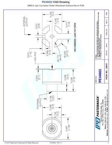any representation or warranty regarding the suitability of the part described herein for any particular purpose, and Pasternack does not assume any liability arising out of the use of any part or documentation.