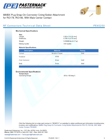 RF Connectors Technical Data Sheet PE45250