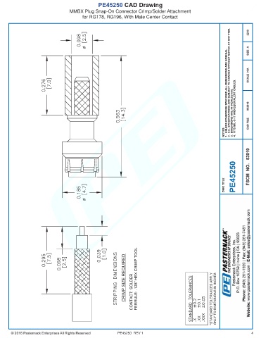 PE45250 CAD Drawing MMBX Plug Snap-On Connector Crimp/Solder Attachment for RG178, RG196, With Male Center Contact PE45250 REV 1 4