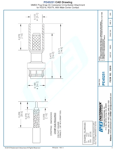 PE45251 CAD Drawing MMBX Plug Snap-On Connector Crimp/Solder Attachment for RG316, RG174, With Male Center Contact PE45251 REV 1 4
