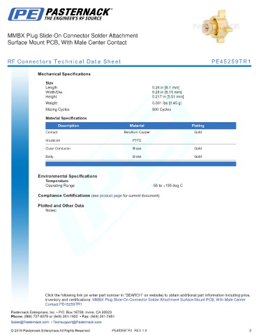 RF Connectors Technical Data Sheet PE45259TR1