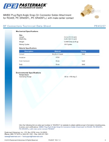 RF Connectors Technical Data Sheet PE45257