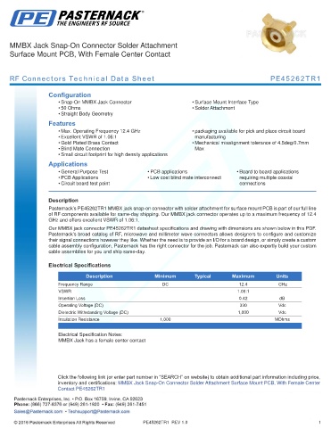 RF Connectors Technical Data Sheet PE45262TR1