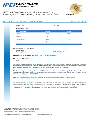 RF Connectors Technical Data Sheet PE45265TR500