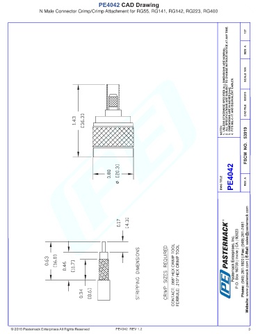PE4042 CAD Drawing N Male Connector Crimp/Crimp Attachment for RG55, RG141, RG142, RG223, RG400 PE4042 REV 1.2 3