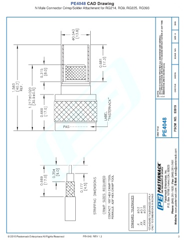 PE4048 CAD Drawing N Male Connector Crimp/Solder Attachment for RG214, RG9, RG225, RG393 PE4048 REV 1.3 3