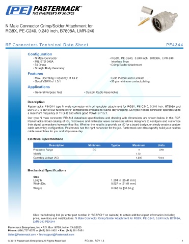 RF Connectors Technical Data Sheet PE4344