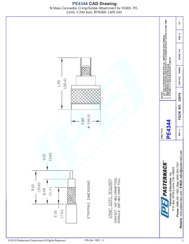 PE4344 CAD Drawing N Male Connector Crimp/Solder Attachment for RG8X, PE- C240, 0.240 inch, B7808A, LMR-240 PE4344 REV 1.2 3