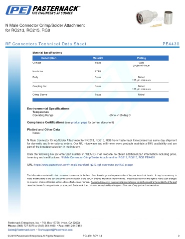 RF Connectors Technical Data Sheet PE4430