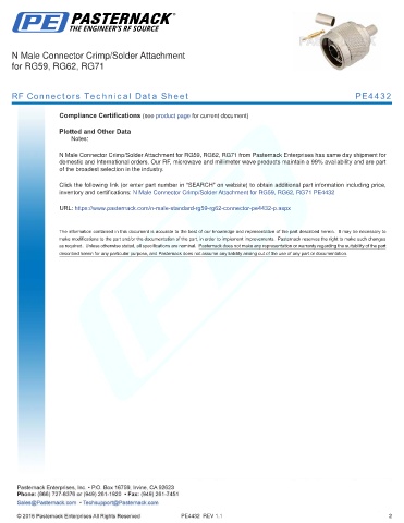 inventory and certifications: N Male Connector Crimp/Solder Attachment for RG59, RG62, RG71 PE4432