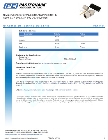 RF Connectors Technical Data Sheet PE44454