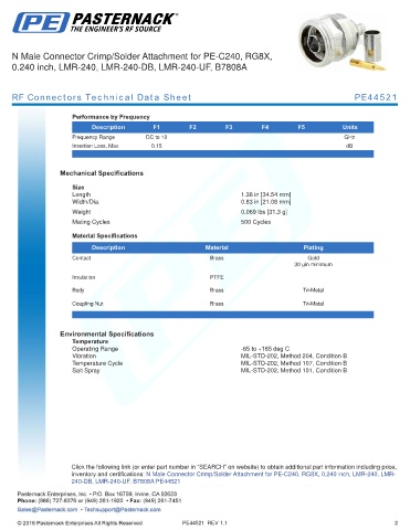 RF Connectors Technical Data Sheet PE44521