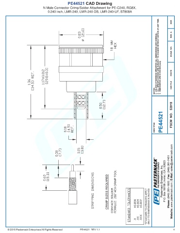 PE44521 CAD Drawing N Male Connector Crimp/Solder Attachment for PE-C240, RG8X, 0.240 inch, LMR-240, LMR-240-DB, LMR-240-UF, B7808A PE44521 REV 1.1 4