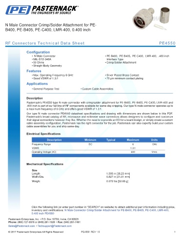 RF Connectors Technical Data Sheet PE4550