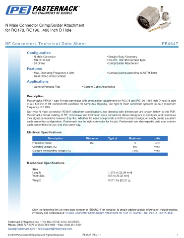 RF Connectors Technical Data Sheet PE4647