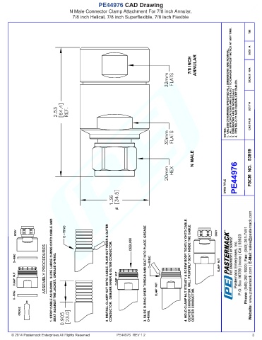 PE44976 CAD Drawing N Male Connector Clamp Attachment For 7/8 inch Annular, 7/8 inch Helical, 7/8 inch Superflexible, 7/8 inch Flexible © 2014 Pasternack Enterprises All Rights Reserved PE44976 REV 1.2 3