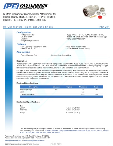 RF Connectors Technical Data Sheet PE4081
