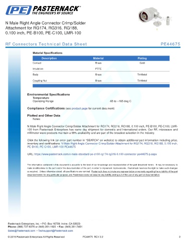 RF Connectors Technical Data Sheet PE44675