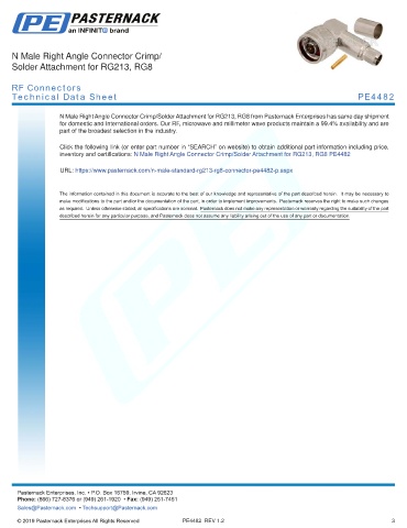 any representation or warranty regarding the suitability of the part described herein for any particular purpose, and Pasternack does not assume any liability arising out of the use of any part or documentation.