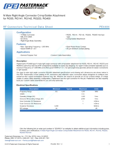 this PDF. Pasternack’s broad catalog of RF, microwave and millimeter wave connectors allows designers to configure and