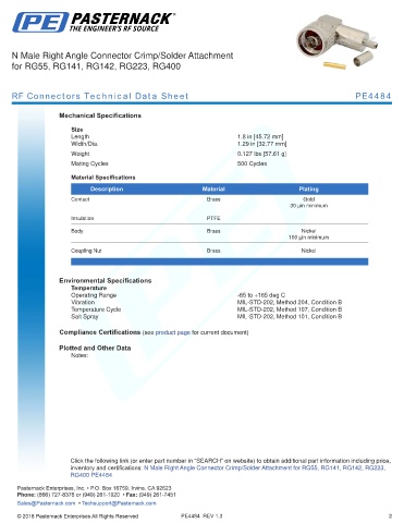 any representation or warranty regarding the suitability of the part described herein for any particular purpose, and Pasternack does not assume any liability arising out of the use of any part or documentation.