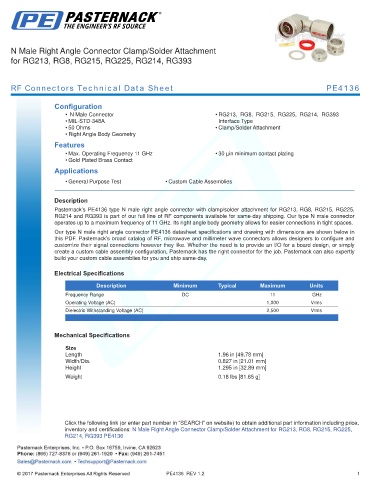 this PDF. Pasternack’s broad catalog of RF, microwave and millimeter wave connectors allows designers to configure and