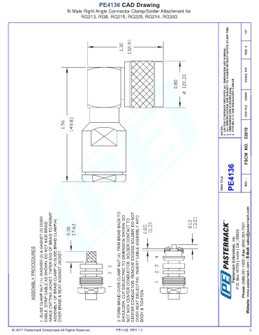 PE4136 CAD Drawing N Male Right Angle Connector Clamp/Solder Attachment for RG213, RG8, RG215, RG225, RG214, RG393 PE4136 REV 1.2 3