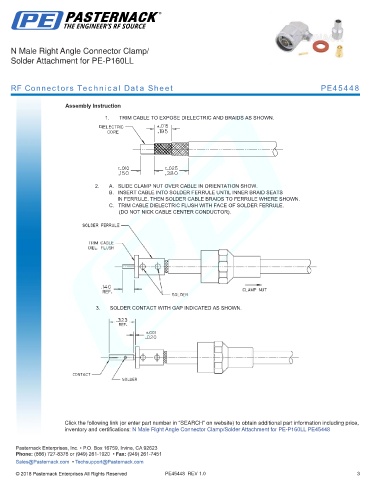 any representation or warranty regarding the suitability of the part described herein for any particular purpose, and Pasternack does not assume any liability arising out of the use of any part or documentation.