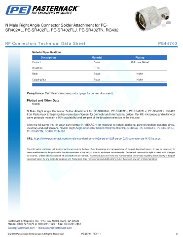 inventory and certifications: N Male Right Angle Connector Solder Attachment for PE-SR402AL, PE-SR402FL, PE-SR402FLJ,