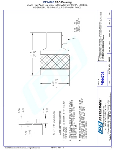 PE44703 CAD Drawing N Male Right Angle Connector Solder Attachment for PE-SR402AL, PE-SR402FL, PE-SR402FLJ, PE-SR402TN, RG402 PE44703 REV 1.1 3
