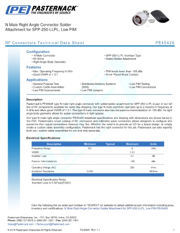 RF Connectors Technical Data Sheet PE45428