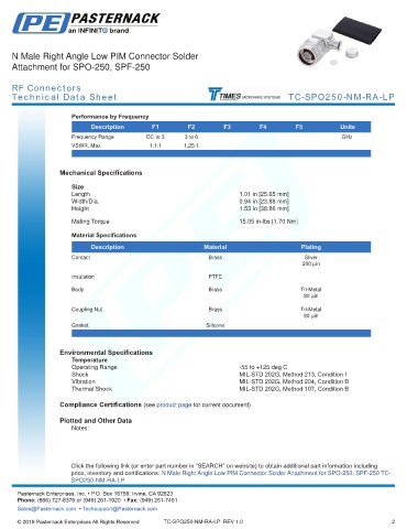 any representation or warranty regarding the suitability of the part described herein for any particular purpose, and Pasternack does not assume any liability arising out of the use of any part or documentation.