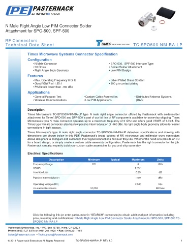 any representation or warranty regarding the suitability of the part described herein for any particular purpose, and Pasternack does not assume any liability arising out of the use of any part or documentation.